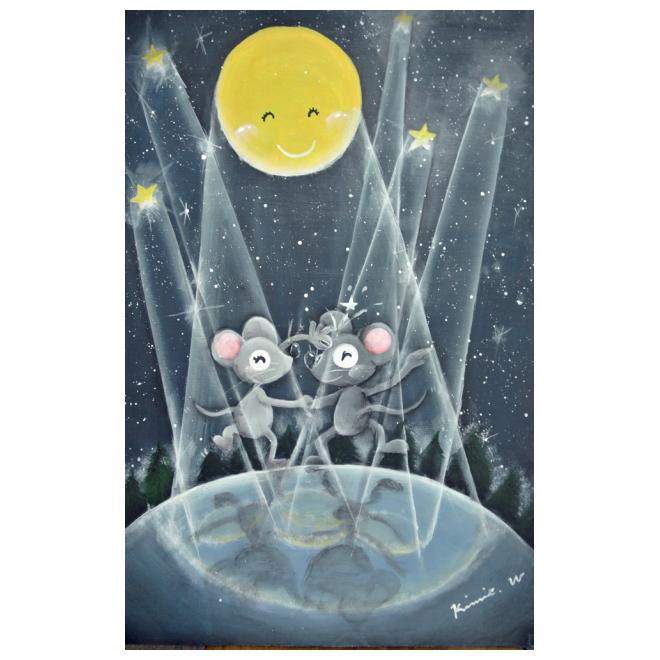 満月の月明かりの下で、仲良しネズミのフッキーとキッチー。(オリジナル絵本「キッチーの美味しい計画」のキャラクターです。)の、姿をみて